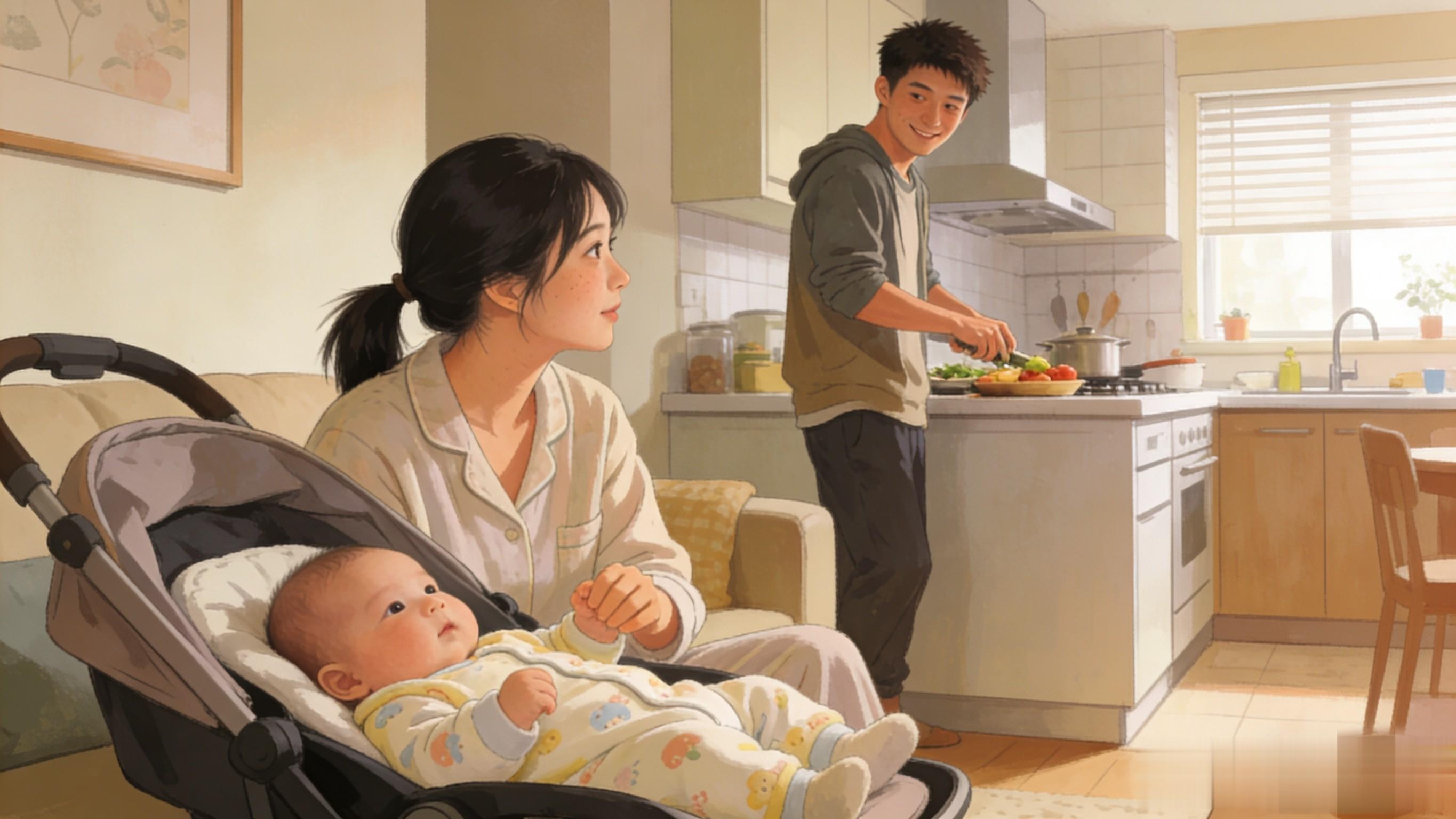 带娃的“压舱石”是爸妈的心态。我曾执着于“完美妈妈”,要求家里一尘不染、宝宝作息规律,结果累到情绪失控。后来和老公分工协作:他负责换尿布、半夜哄睡,我负责喂奶、日常照料,哪怕只是聊聊天,也少了很多孤单。其实宝宝不需要完美爸妈,情绪稳定的陪伴才重要。家里乱点、饭菜简单点没关系,爸妈心态平和,宝宝才能感受到安全感。