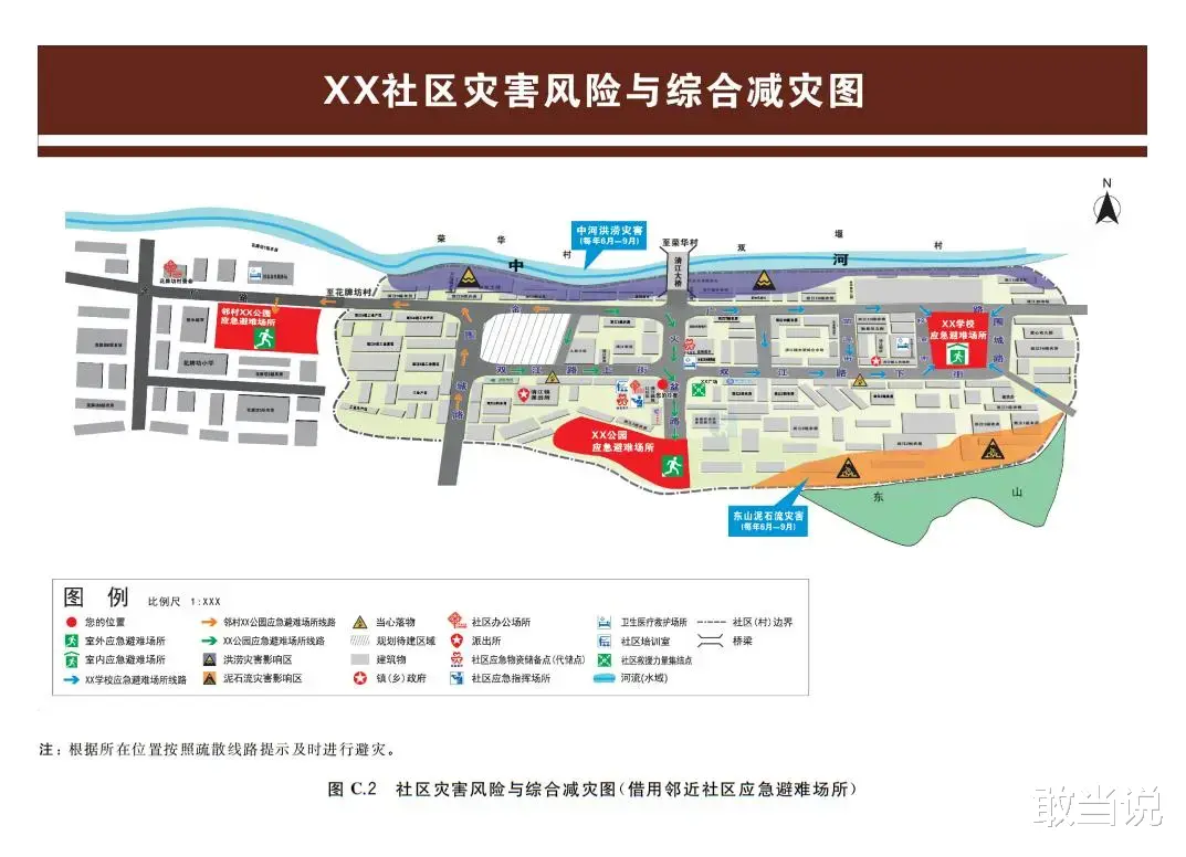 这套新国标把社区防灾标志分成四大类,每一类都是关键时刻的保命符。第一类是警告标志,十个黄底黑图的"沉默哨兵"会告诉你身边潜伏着哪些危险:当心洪涝的标志像翻滚的浪花,当心雷电的图案是劈开的闪电,还有当心塌方、滑坡、泥石流的警示,就像十个不停闪烁的红灯,提醒你避开死亡陷阱。
