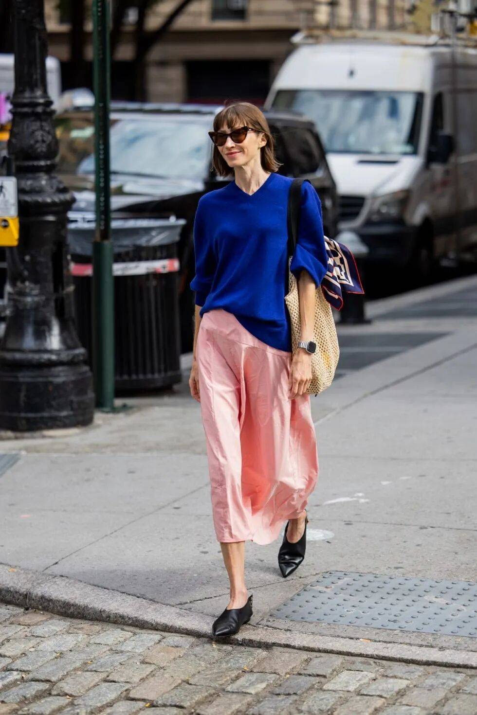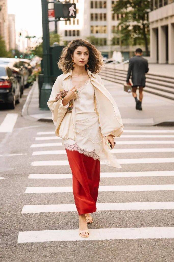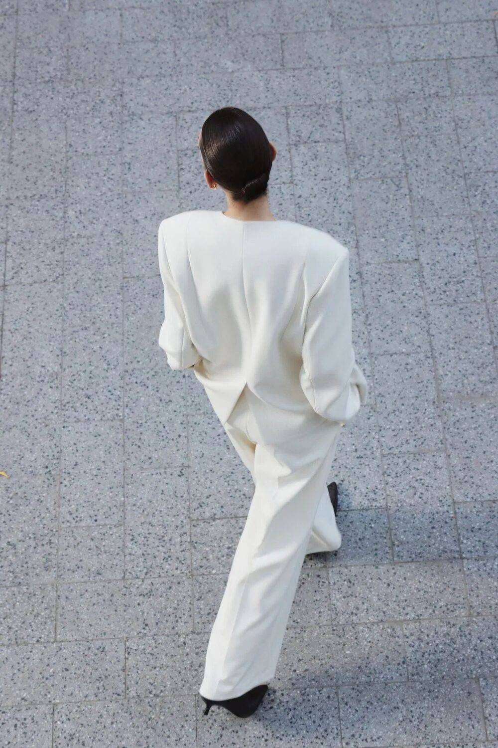 真正懂得穿奶油白的人,往往会在同色系里做文章。一件暖调的奶油白外套,搭配一条冷调的米白长裤,两种白的相遇让原本简单的搭配有了层次感,像是一幅画里有了光影的变幻。
