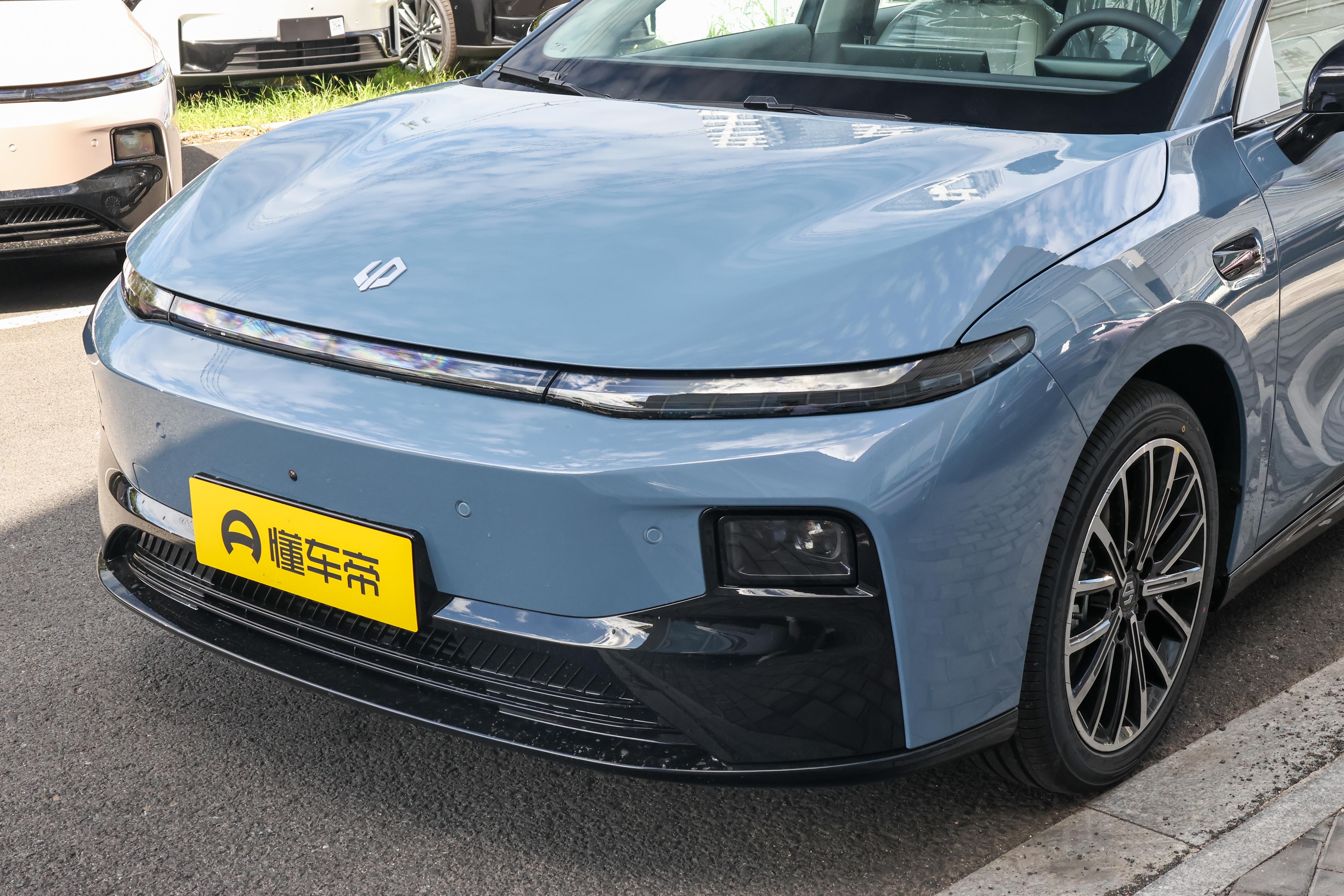 前脸是贯穿式LED灯带,8mm窄条,128颗灯珠,点亮后特别干净利落,不是那种粗笨的光带。封闭式格栅做了细微纹理,阳光下有淡淡的光泽,不像有些电车就是一块黑塑料,显廉价。激光雷达藏在挡风玻璃上方,和车身同色,不仔细看根本发现不了,比那些凸在车顶的雷达和谐太多,既不破坏整体感,又不挡视线,这点设计真的走心。大灯是飞翼星芒造型,里面有三点式晶体,晚上点亮辨识度拉满,朋友说老远就能认出是我的车 。