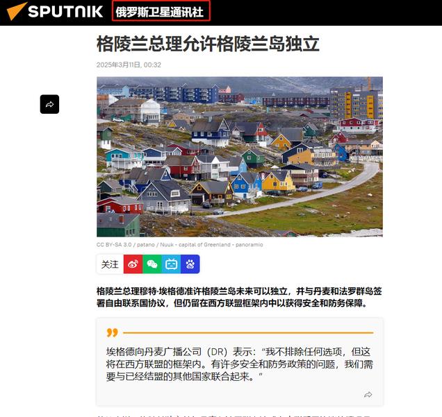 信源:俄罗斯卫星通讯社 2025年3月11日 关于“格陵兰总理允许格陵兰岛独立”的报道