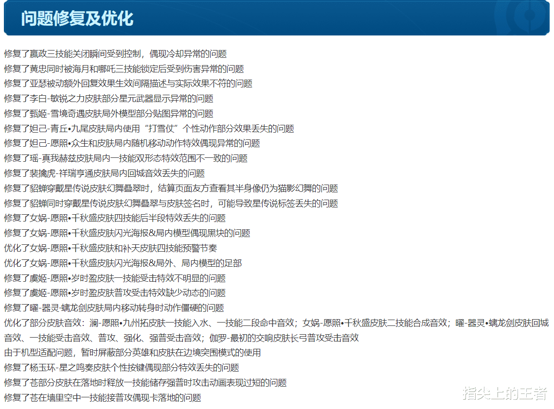 大家好我是指尖,正式服20日更新,除了上架一些活动外,还对五个英雄进行了平衡性调整,另外也修复了一大堆的bug,至于10v10的大范围装备平衡,喜欢玩的可以去看下公告,就不细讲了,还是以我们的常规峡谷为主。