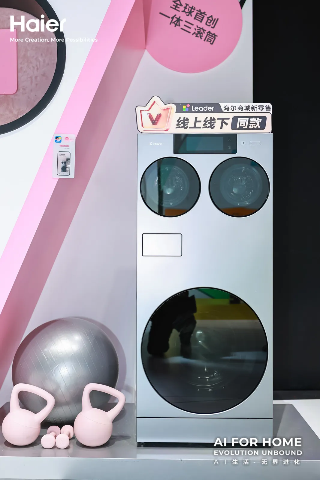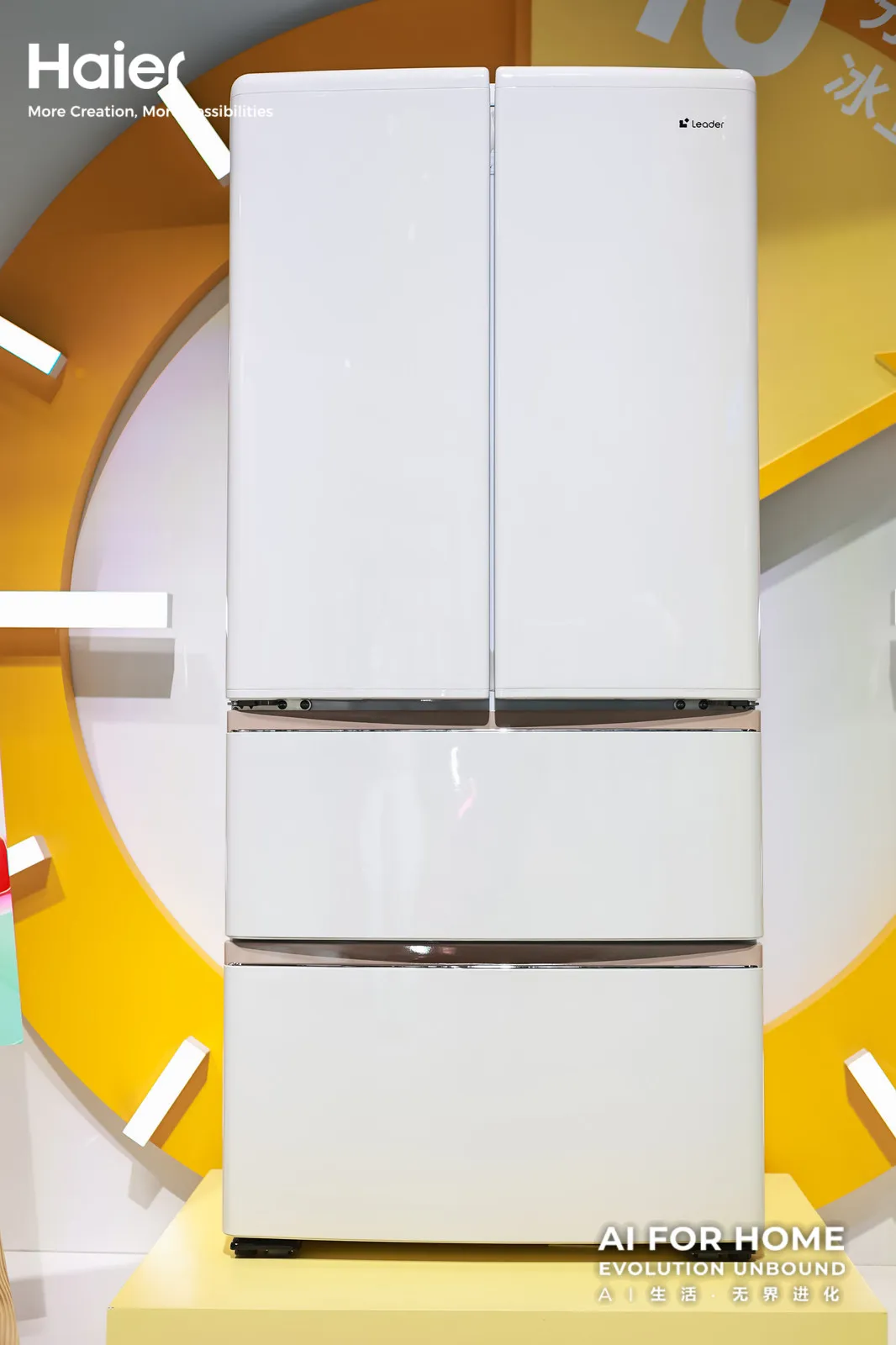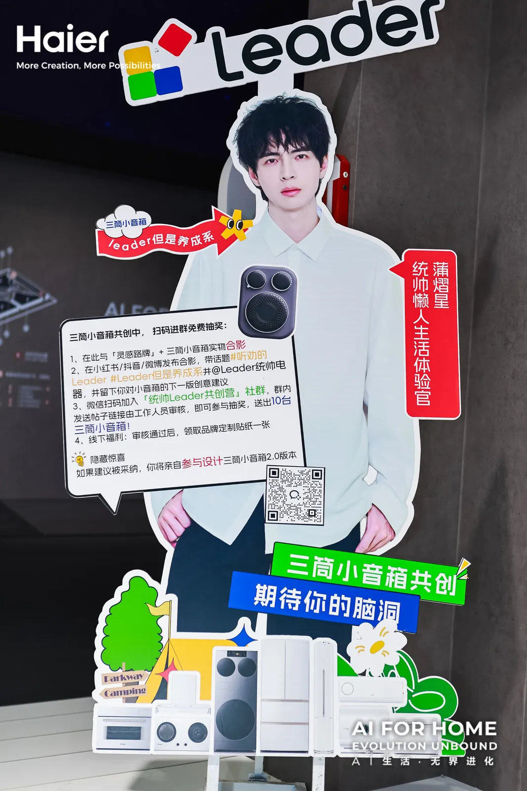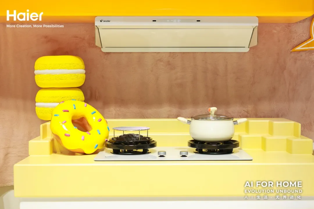 在人潮涌动的展馆里,Leader统帅的展台却显得有些“另类”。这里没有高冷的参数墙,也没有照本宣科的产品宣讲,取而代之的是多巴胺风格的“懒人家族”展示区,和一句醒目的slogan:“Easy Living,Smart Saving”。