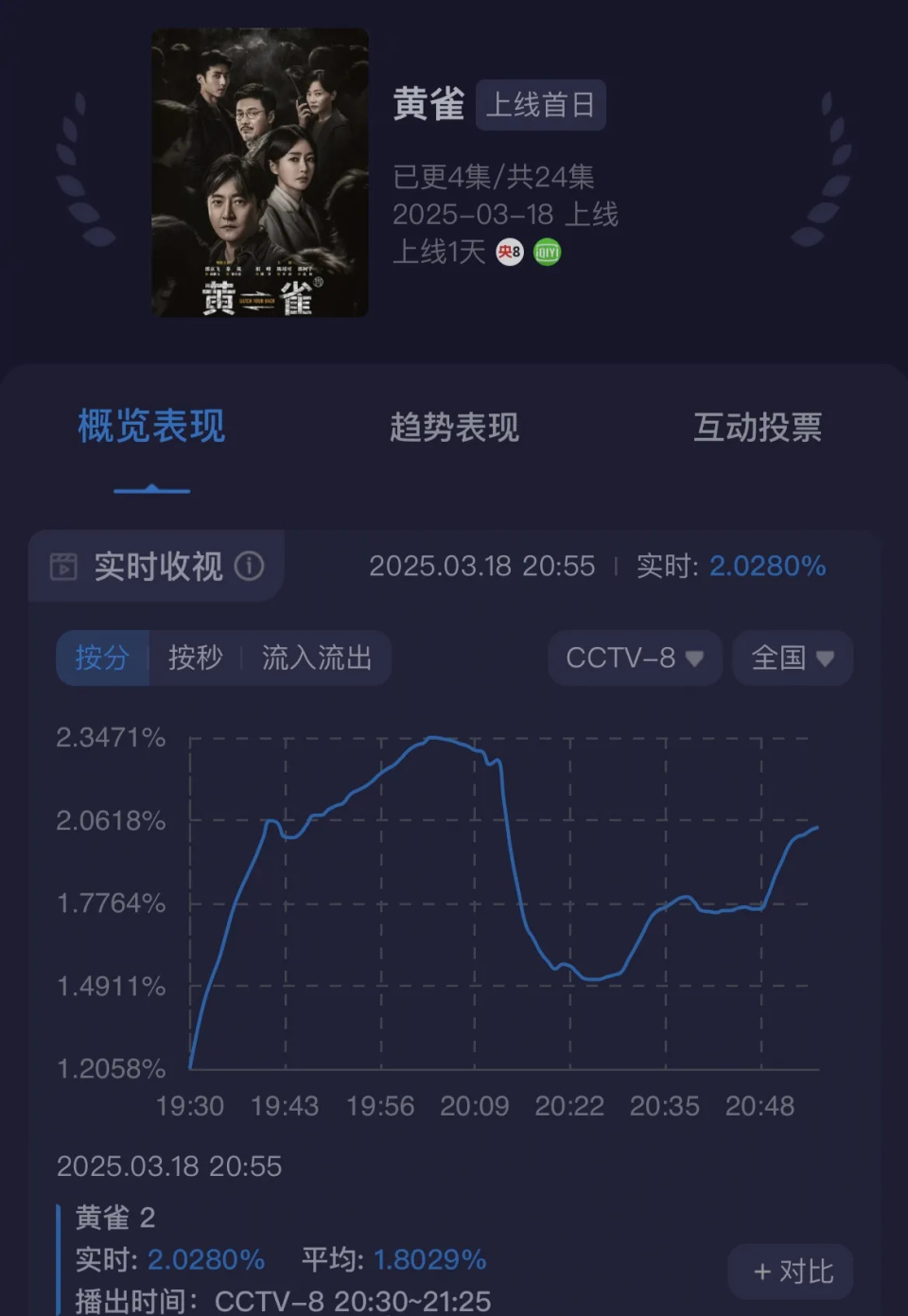 不过这部开播之后也没有让人失望,收视率直接破2,绝对是硬实力,轻轻松松就达到了目标。
