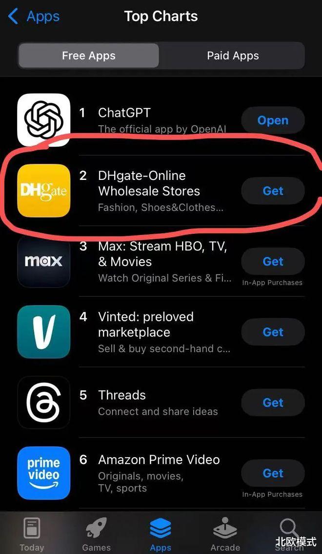继中国电商APP Shein和Temu在海外走红之后,最近又有一款新的中国电商APP登上了瑞典免费APP下载量榜的榜首(注:原新闻并没有说具体是哪款APP,但是小编Appstore看了一眼貌似是一款叫DHgate的APP,不过它其实并没有在下载量榜排第一,而是第二)。