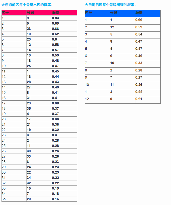 概率数据如下: