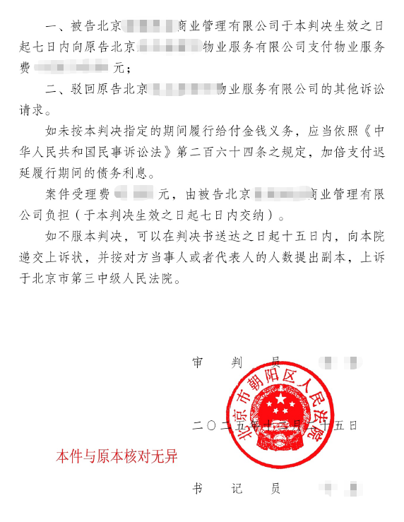 法院判决充分支持了原告的核心诉讼请求,被告向原告支付全部物业费数百万元。