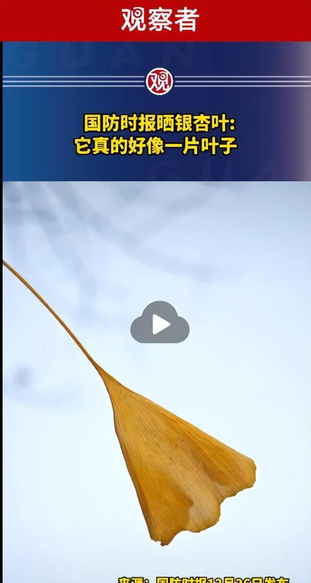信息来源:观察者网2024-12-26 国防时报晒银杏叶:真的好像一片叶子
