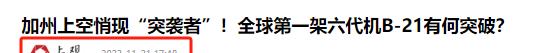 信息来源:上观新闻2023-11-21 加州上空悄现“突袭者”!全球第一架六代机B-21有何突破?