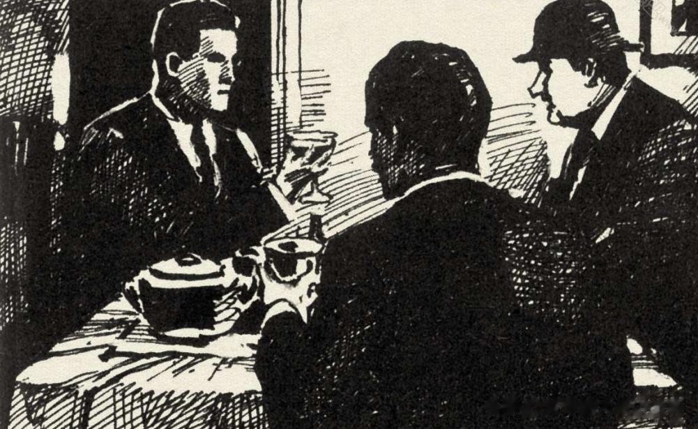 福尔摩斯点燃雪茄烟,告诉他们,自己一整天就是打扮成这个样子和匪徒们打交道的。琼斯告诉他,自己对真正的凶犯一无所知,只要能把凶犯捉到,愿意一切听从福尔摩斯的调遣。