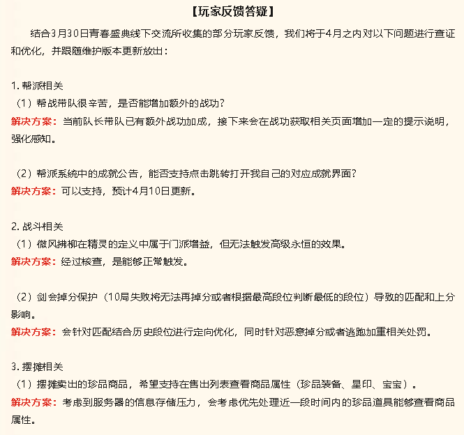 这种默契具体体现在哪里呢?以《梦幻西游》手游为例,今年3月30日,它迎来了九周年庆典。在这场庆典上,官方与玩家进行了深入的交流,从玩法规则到UI功能,都认真听取了玩家的意见和建议。仅仅几天后,官方就在游戏维护公告中详细列出了这些反馈,并给出了具体的解决方案和承诺的优化时间。