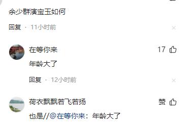 “宝玉能让余少群来演吗?感觉他的演技还可以。”、“不行,年纪有点大了,看起来估计会有点奇怪。”