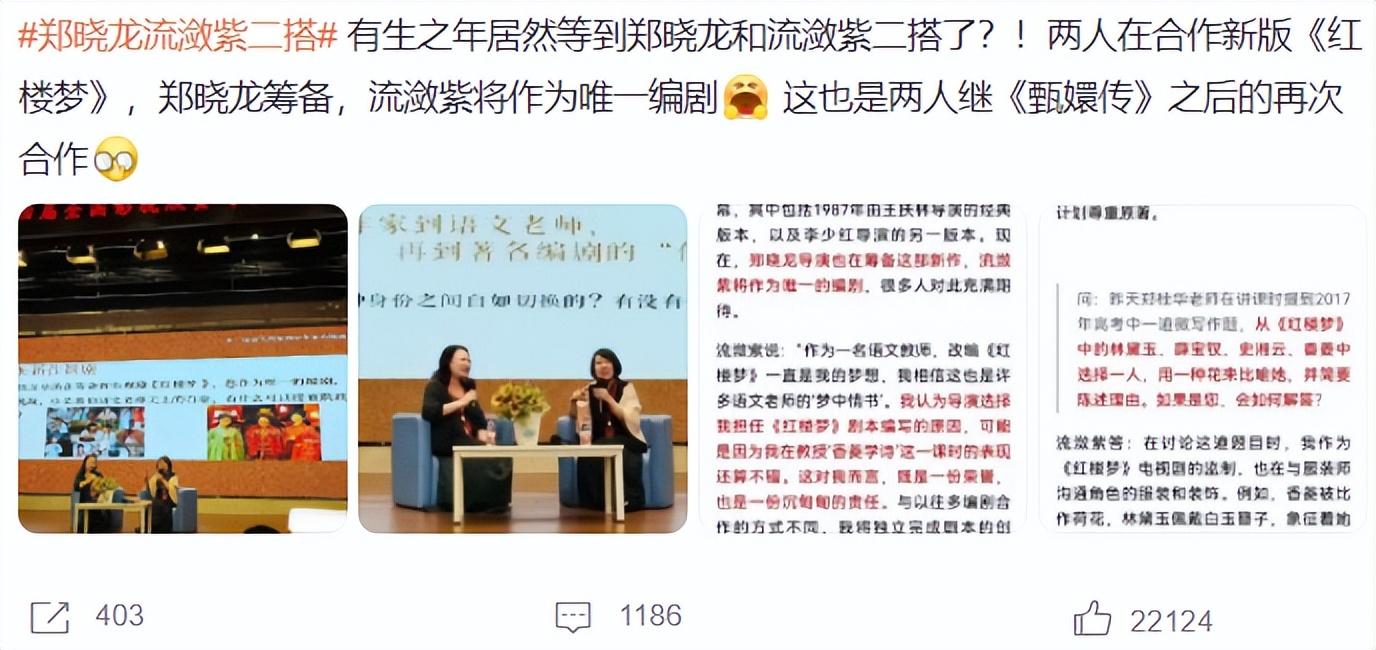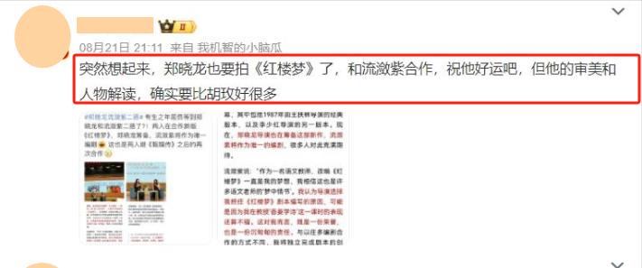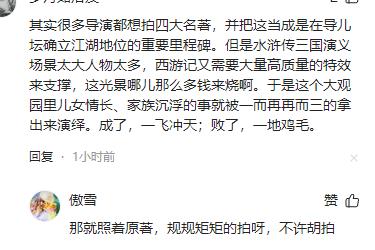 可是即便郑导的“实力”摆在观众面前,在听到郑导也要翻拍电视剧《红楼梦》的时候,很多人还是发出了质疑的声音。