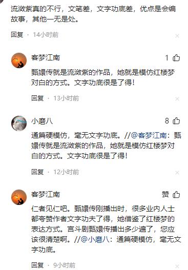 还有很多人吐槽他和流潋紫即将再次合作:“文笔根本就不行,要不是有编剧在,《甄嬛传》都得垮!”