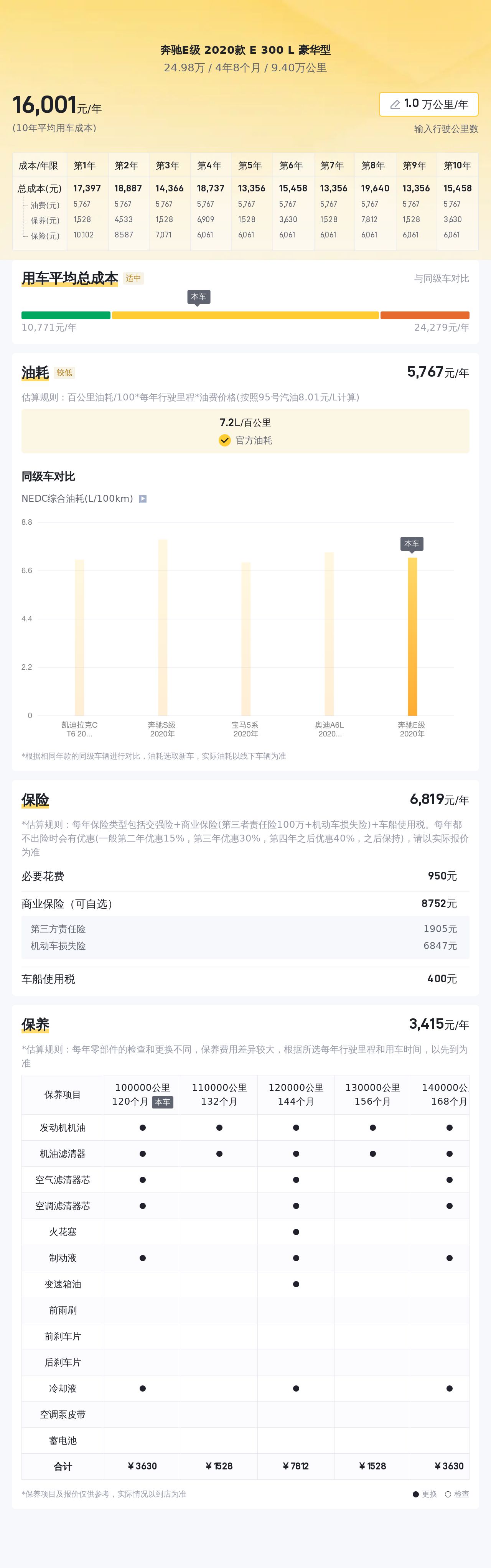 根据估算,这辆车年均综合用车成本大概在每年1.6万元左右。这项花销是跟车主的实际用车场景和使用强度有直接变化的。