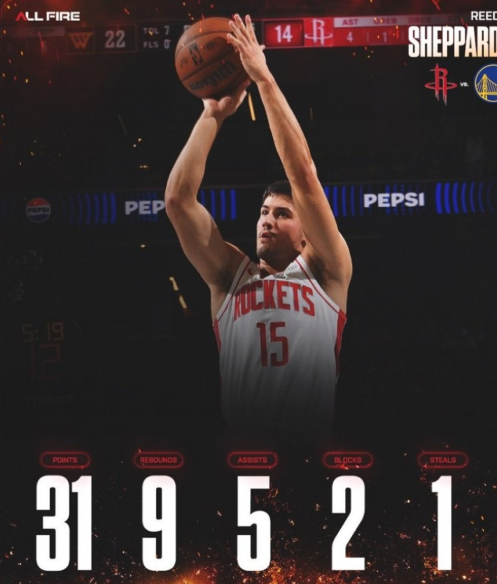 北京时间11月27日,火箭104-100击败勇士,拿到一场宝贵的胜利!21岁新星谢泼德大爆发,打出了NBA职业生涯最佳一战,全场砍下31分9篮板5助攻2抢断1盖帽,其中得分和篮板都是生涯新高!