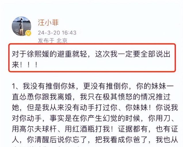 汪小菲表面上一直在争取抚养权,但是大S曾经发文表示是他不要孩子的。