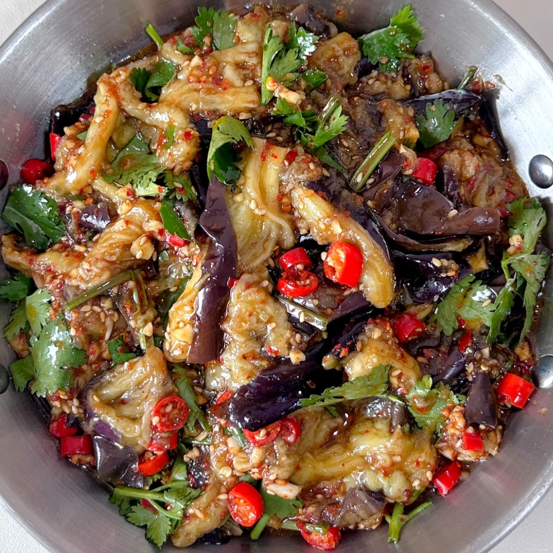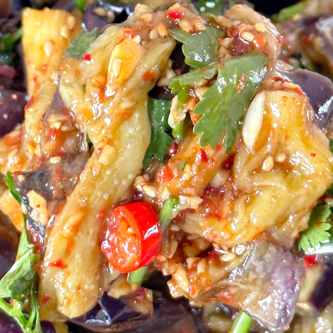 😋 **口感描述**:茄子经过蒸煮后变得柔软却不失韧性,搭配酸甜适中的酱汁和微微辛辣的小米辣,层次分明,清新爽口,是一道让人食欲大增的开胃菜。
