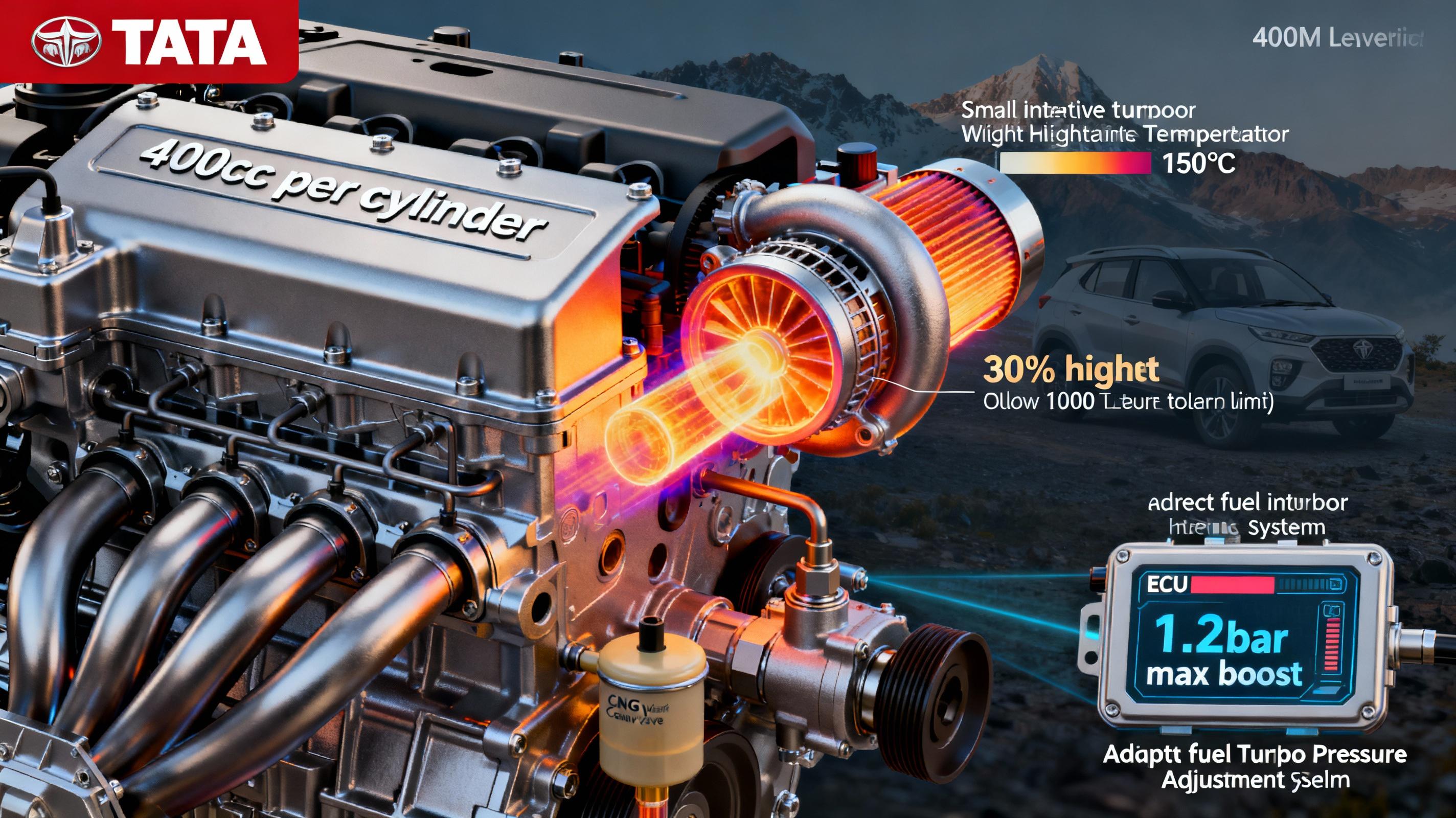 塔塔1.2T发动机的核心设计逻辑,始于“单缸400cc最优排量”理论。行业研究显示,单缸排量在350-450cc区间时,热效率与动力输出的平衡达到最佳——过小的单缸排量会导致燃烧室热损失增加,过大则容易引发爆震。新款Punch的1.2T三缸机恰好将每个气缸的排量设定为400cc,这一设计为高效动力输出奠定了基础。 缸内直喷+小惯量涡轮:双技术驱动动力跃升