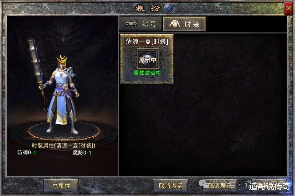 这次三端的时装系统一共就两件,即“清凉一夏”男装和女装,外观怎么样没啥说头,其属性也比较低,或许只能从属性角度看起来才有些复古版本的感觉。如上图所示,清凉一夏时装的属性为:防御0-1,魔御0-1。其属性比魔法头盔还差了点,对于玩家而言属性增加不算强悍。