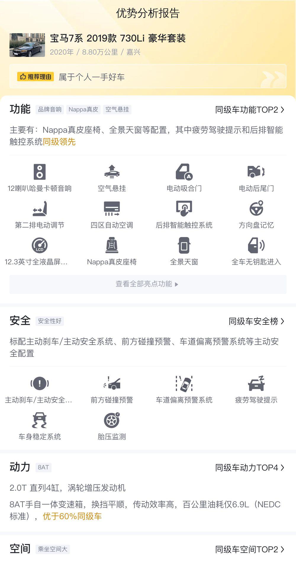 配置方面,这辆730Li配备了Nappa真皮座椅、全景天窗、后排智能触控系统、18喇叭哈曼卡顿音响等,豪华感十足。但这些配置在2019款的7系上并非顶配,例如,它没有配备激光大灯、魔毯智能空气悬挂系统等更高级的配置。所以,如果你追求极致的豪华体验,这辆730Li可能无法完全满足你。