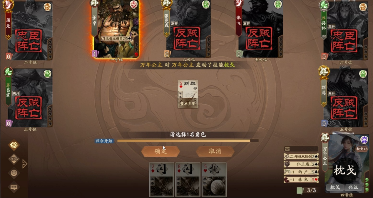 大家好,这里是你们的老朋友手杀菌!我们在赛场里面最难玩的角色,那就是内奸。因为自己需要击败场上所有的人才能够获得胜利,而且在击败对手的时候一定要有顺序,主公必须要最后一个击败,才能够算成功。如果我们率先就把主公击败,或者是其余的势力把主公击败那都算作失败。