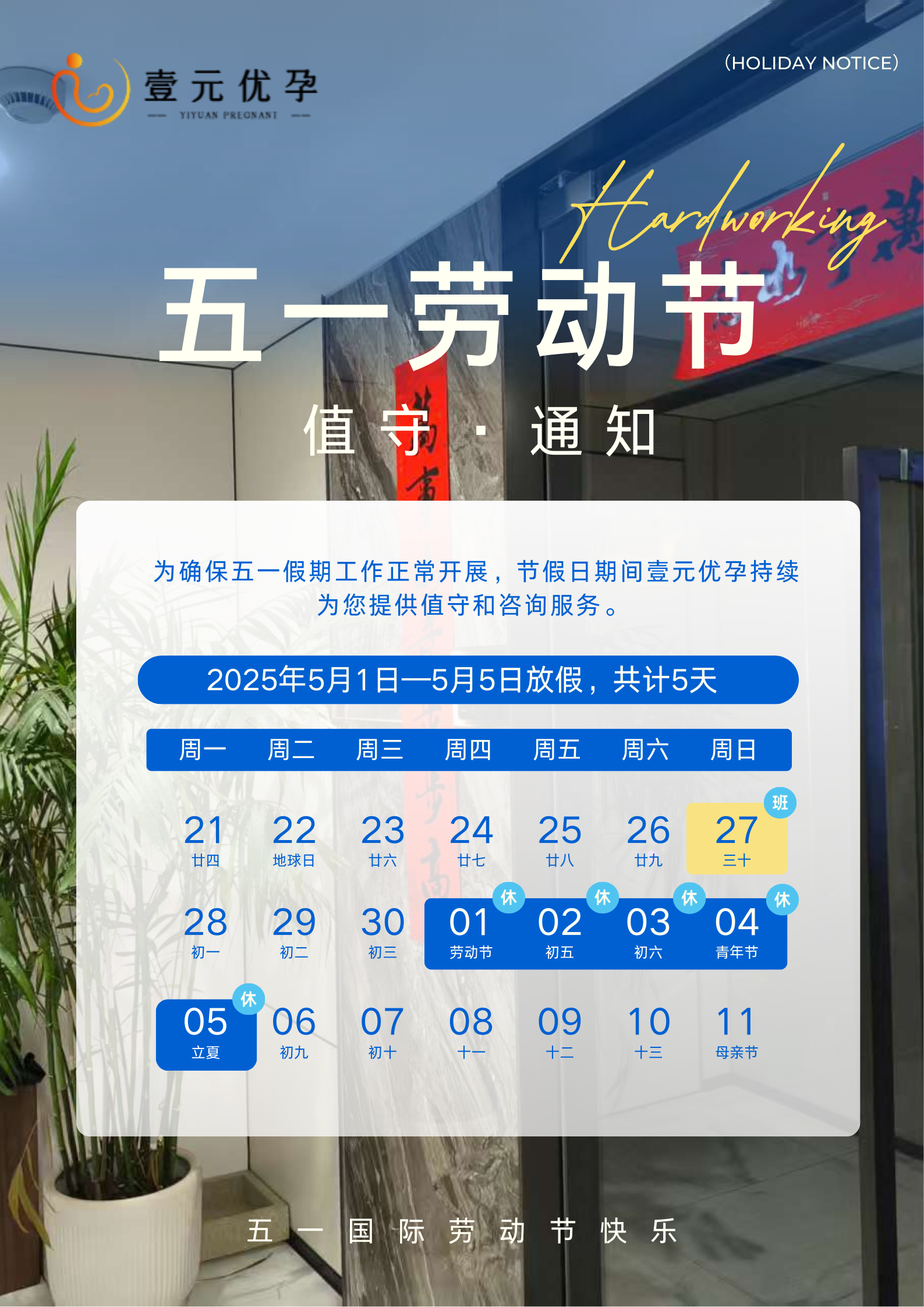 壹元优孕五一值守通知!