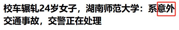 截至发稿,湖南师范大学工作人员回应新闻记者称,这是一起意外交通事故,交警正在处理中,学校会积极配合做好相关工作。网友:希望校车司机受到应有的惩罚,不能仅仅定性为失误的普通事故!