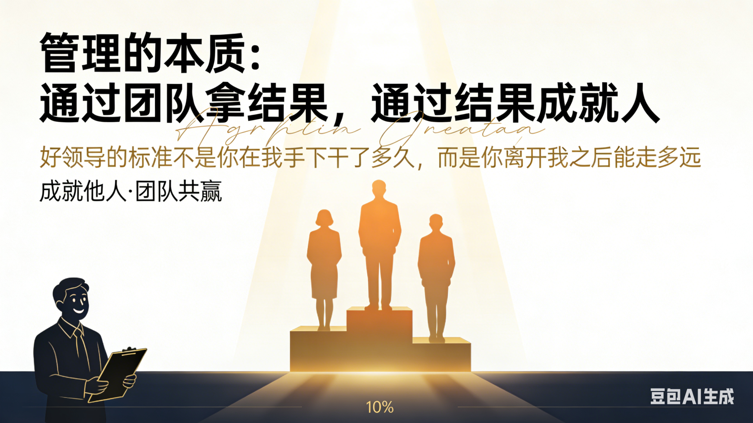 很多老板有个毛病:自己冲在最前面,回头一看,身后没人了。他们觉得:我冲得最快,我就是好领导。错了。你冲得最快,只能说明你是个好士兵,不是好将军。管理的本质是什么?四个字:通过团队。你一个人的业绩再高,能高过十个人吗?你一个人的脑子再快,能快过一个团队吗?真正有水平的领导,懂得把自己“摘”出来——我不下场踢球,我是那个在场边看全局、调战术的人。但光有“通过团队拿结果”还不够,后面还有半句:通过结果成就人。什么意思?项目做成了,奖金发了,这事儿就完了?没有。你要问问自己:跟着你的这些人,有没有变得比半年前更强?他们离开你这儿,能不能找到更好的工作?他们出去,敢不敢说“我是XX带出来的”?好领导的标准不是“你在我手下干了多久”,而是“你离开我之后能走多远”。我认识一个老板,每年送核心高管去读EMBA,学费他自己出。有人说:你傻啊,学成跑了怎么办?他说:在我这儿能跑出去的人,说明我这儿装不下他了,我应该高兴。要是一直跑不出去,我才该哭。这就是格局。