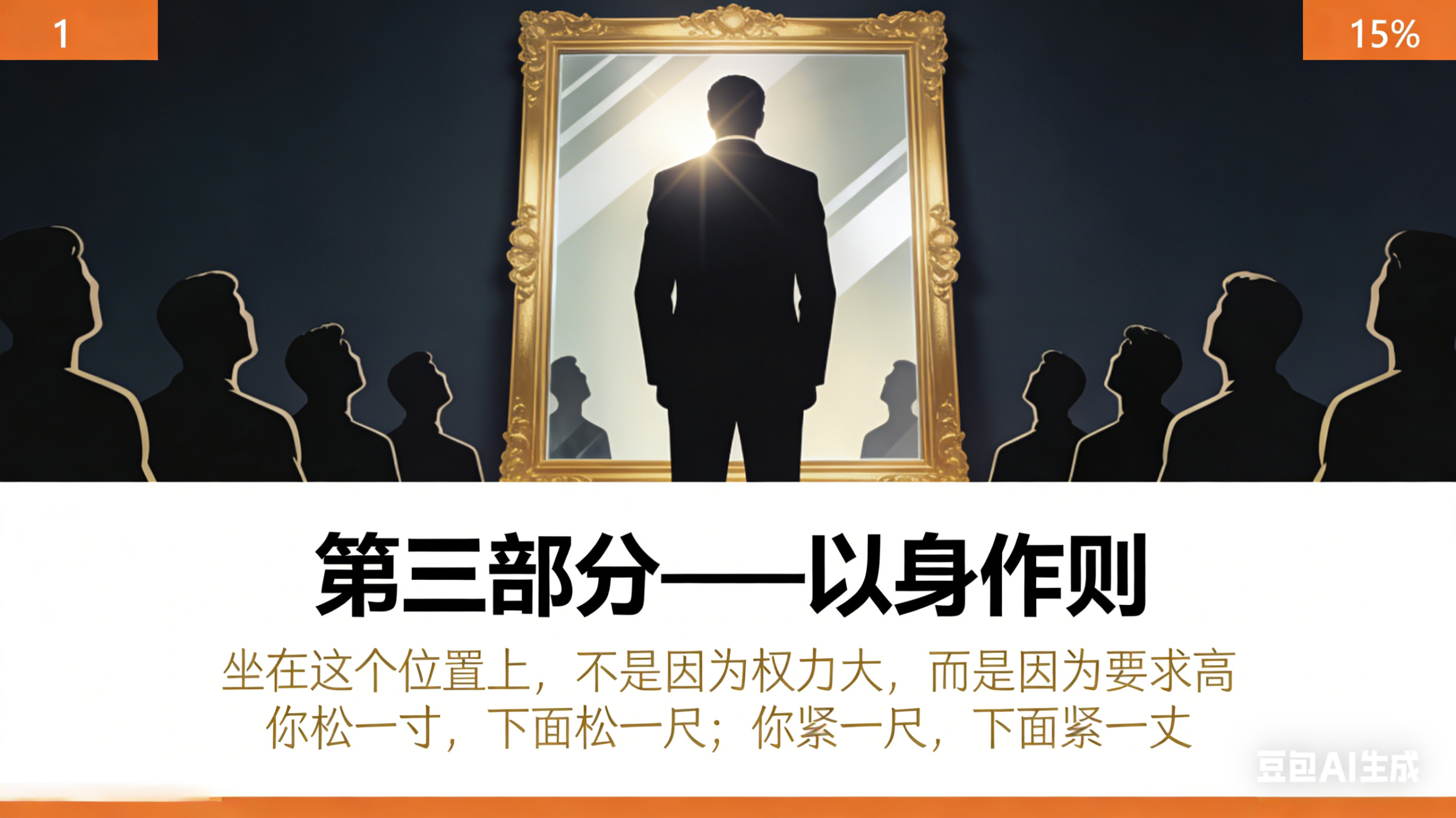 最后这条,最扎心。很多领导喜欢讲“以身作则”,结果自己迟到早退,让员工全勤;自己敷衍了事,让员工精益求精;自己能力一般,让员工拼命学习。你觉得可能吗?能力太低,德不配位,没人服你。这是人性。你让员工加班,自己先走?员工嘴上不说,心里骂你八百遍。你让员工学习,自己刷短视频?员工表面点头,背后觉得你虚伪。你让员工担当,自己甩锅?员工下次学你,把锅甩得更远。有水平的领导,对自己比对手下更狠。他们知道:坐在这个位置上,不是因为权力大,而是因为要求高。要求自己比要求别人更高——上班比谁都早,下班比谁都晚;遇事先说自己错了,功劳先说是团队的;需要冲的时候第一个上,需要扛的时候最后一个走。这不是表演,这是底线。因为你一旦坐上这个位置,就不是代表你个人了。你是风向标,是参照系,是员工判断“该怎么做”的标准。你松一寸,下面松一尺;你紧一尺,下面紧一丈。最后说一句实话:做领导,不是权力的开始,是约束的开始。你要识人心、懂人性,但不能玩心眼、耍套路;你要通过团队拿结果,但不能把团队当工具;你要以身作则,但不能只做表面功夫。真正有水平的领导,不是让员工怕你,而是让员工觉得:跟着你,有奔头。---