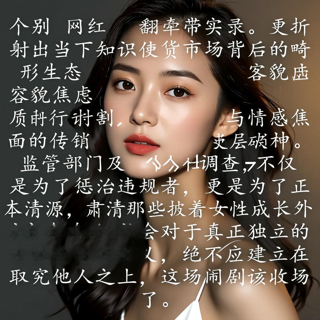 这起事件不仅仅是个别网红的翻车实录,更折射出当下知识付费市场背后的畸形生态。利用女性的容貌焦虑与情感焦虑进行收割,本质上是一种精神层面的传销。监管部门及时介入调查,不仅是为了惩治违规者,更是为了正本清源,肃清那些披着女性成长外衣的毒鸡汤。社会对于真正独立的女性价值的定义,绝不应建立在取悦他人之上,这场闹剧该收场了。