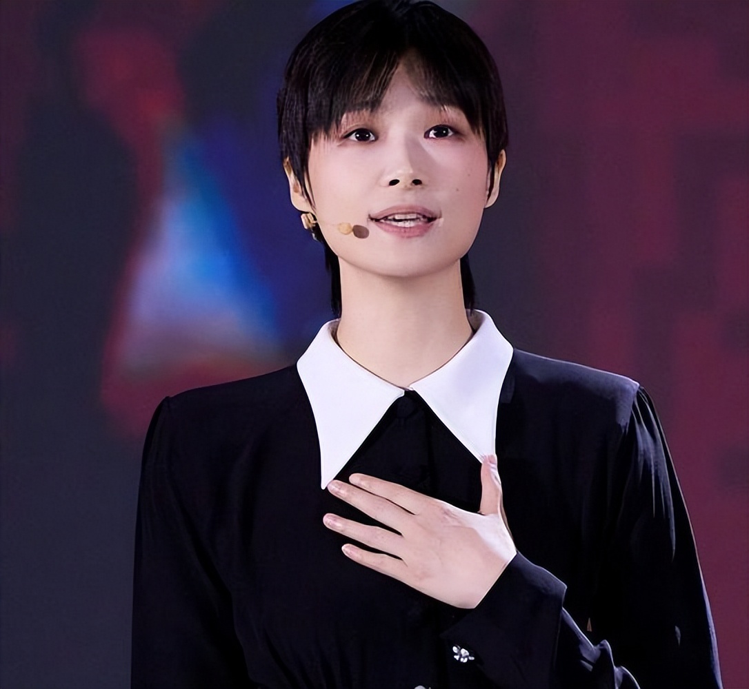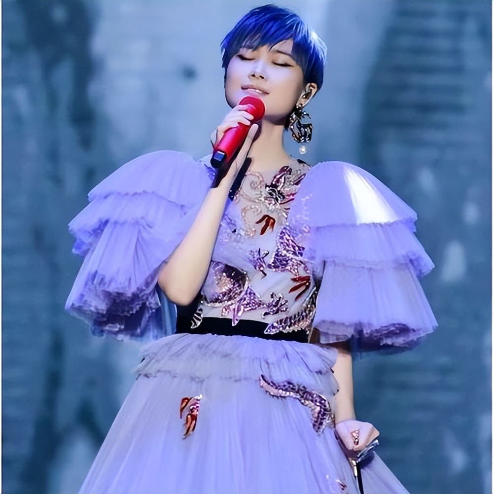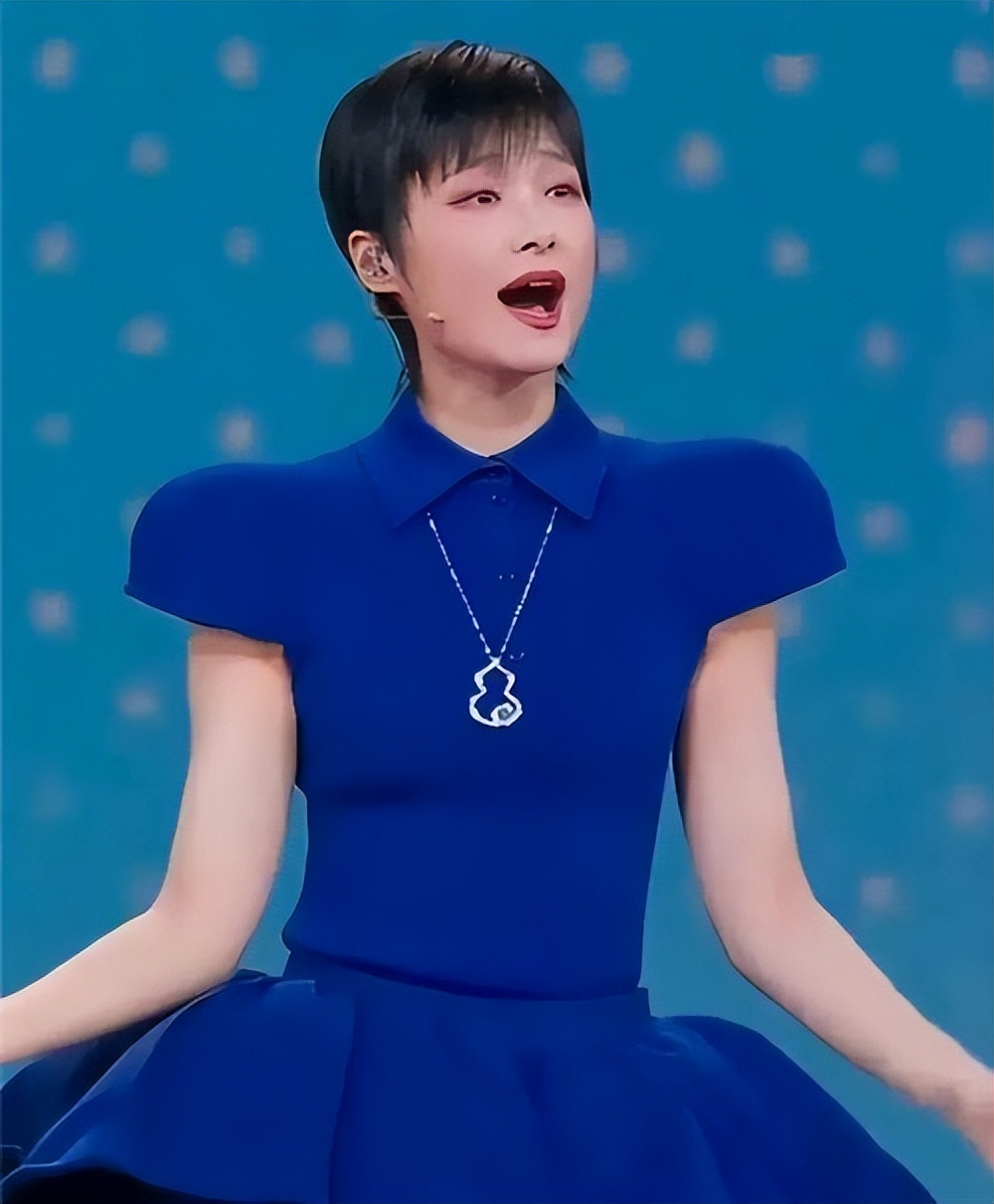 2025年的一场大型晚会上,她穿了一条蓝色的蓬蓬裙登台。