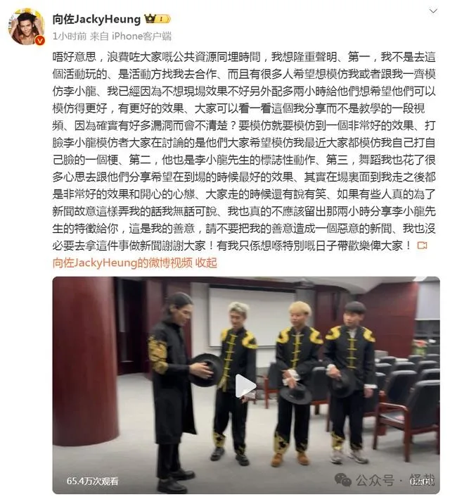 一名李小龙模仿者和向佐互动时被扇巴掌,模仿者表示已经报警