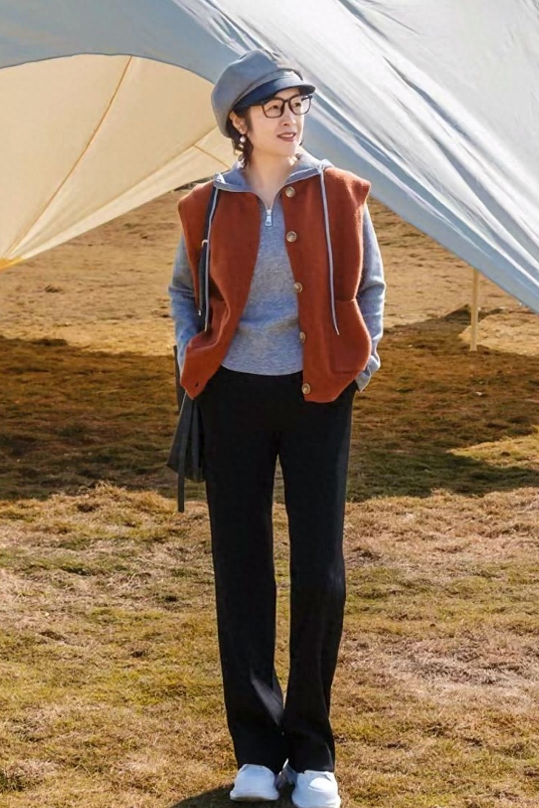 中产品牌的运动鞋,驾驭中产风穿搭自然最好,也非常贴合中年女性优雅沉稳的气质。比如萨洛蒙运动鞋,搭配lululemon瑜伽裤和始祖鸟冲锋衣,标准的中产运动风穿搭,舒适得体,也不乏时尚感,全身品牌傍身,充分展现了中年女性的气质和档次。