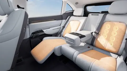 内部空间是焕新极氪 7X的核心优势。该车基于 SEA 浩瀚架构打造的车身,可以实现 83.34% 的同级头部得房率,转化为可感知的实用体验。其后排头部空间至大可达 1021mm,1187mm 至大腿部空间让满员出行也能舒展,而且主驾 14 向、副驾 14 向电动调节座椅可以适配不同身材需求。另外,该车全车拥有的 40 处储物空间满足分类收纳,905L 后备厢可轻松容纳婴儿车与行李箱,后排座椅至大滑程达 215mm,前移后容积可拓展至 1978L,一键放倒即可变身露营睡床。再加上其搭配车顶行李架,可以更好的覆盖通勤、自驾、露营等多元场景。不仅如此,该车在舒适性配置方面也是诚意拉满,“冰箱彩电大沙发” 礼包含 5.3L 冷暖恒温冰箱(-6°C 至 50°C 可调)与 220V/2.2kW 车载电源,同级少有的石墨烯加热 + 热石理疗功能、电动躺椅 + 355mm 连体式电动腿托 + 遮阳帘组合,让老人孩子长途出行也能放松。另外,该车的后排 6 英寸独立控制屏避免需求冲突,双层夹胶静音玻璃(降噪 2-3dB)与环舱 4673mm 超长氛围灯带,进一步提升座舱舒适格调。