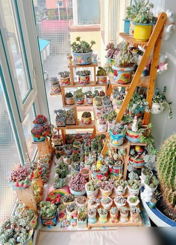 最近刷到长沙那户的多肉阳台,我直接把手机贴到鼻尖——三层栏杆全挂着肉乎乎的家伙,像把春天的绿瀑布剪碎了挂上去,粉爪爪的桃蛋、橙尖尖的橙梦露、嫩绿水灵的佛珠挤成一团,阳光一照比奶茶店的冰沙还透亮,谁看了不拍大腿喊句“这日子也太会过了”?