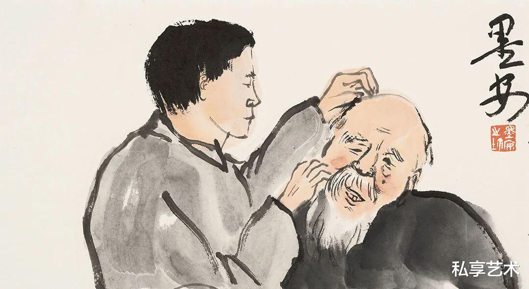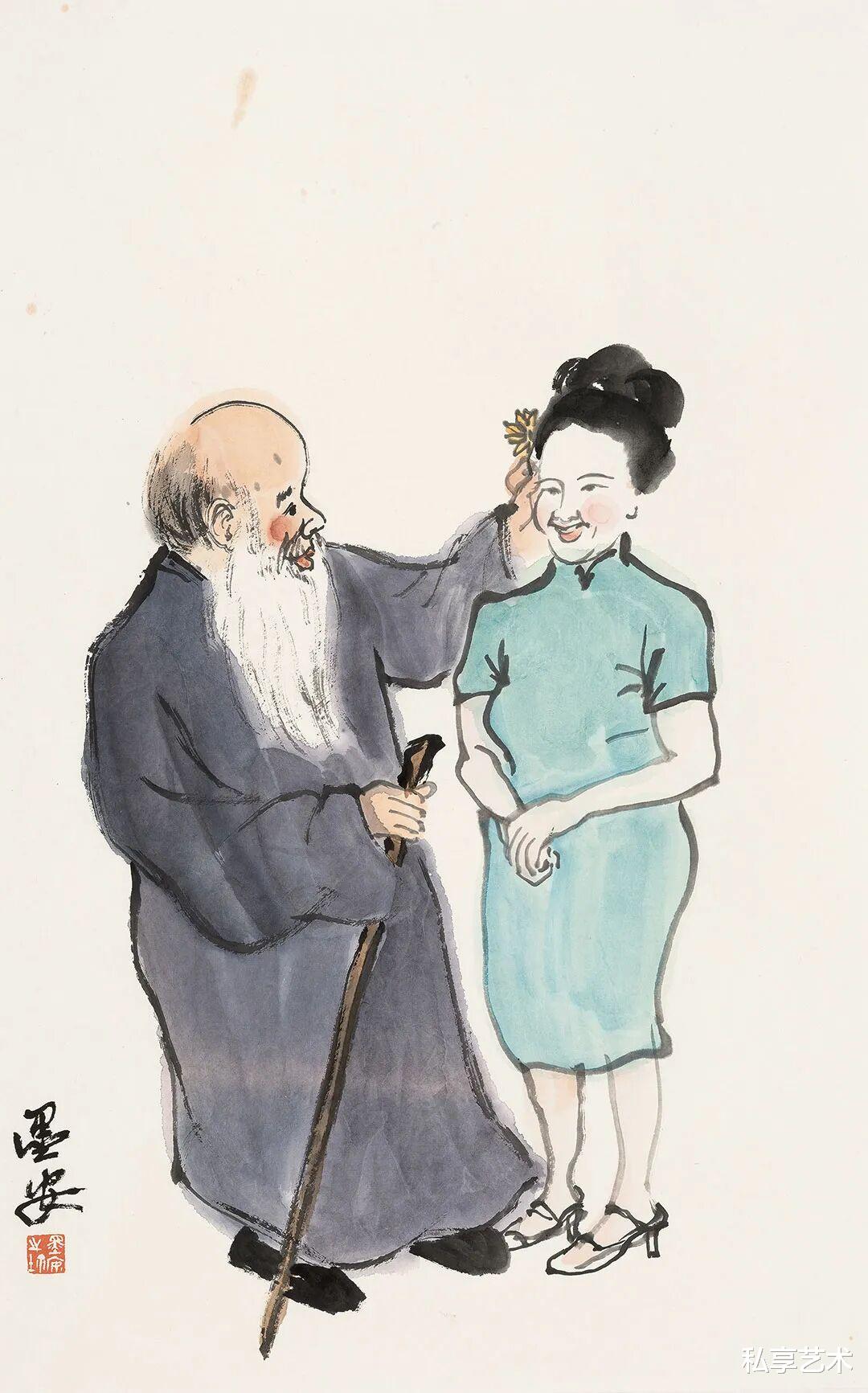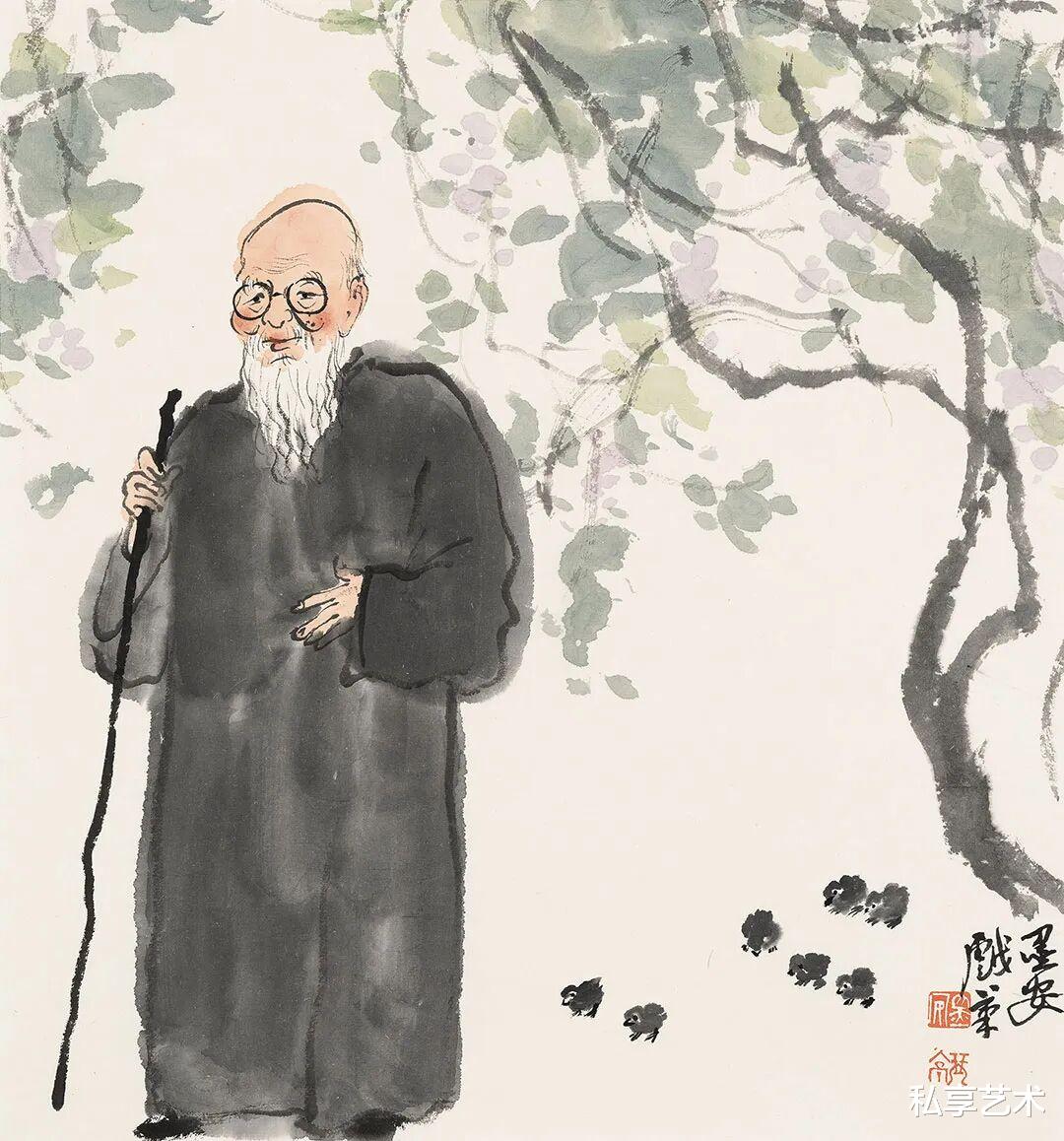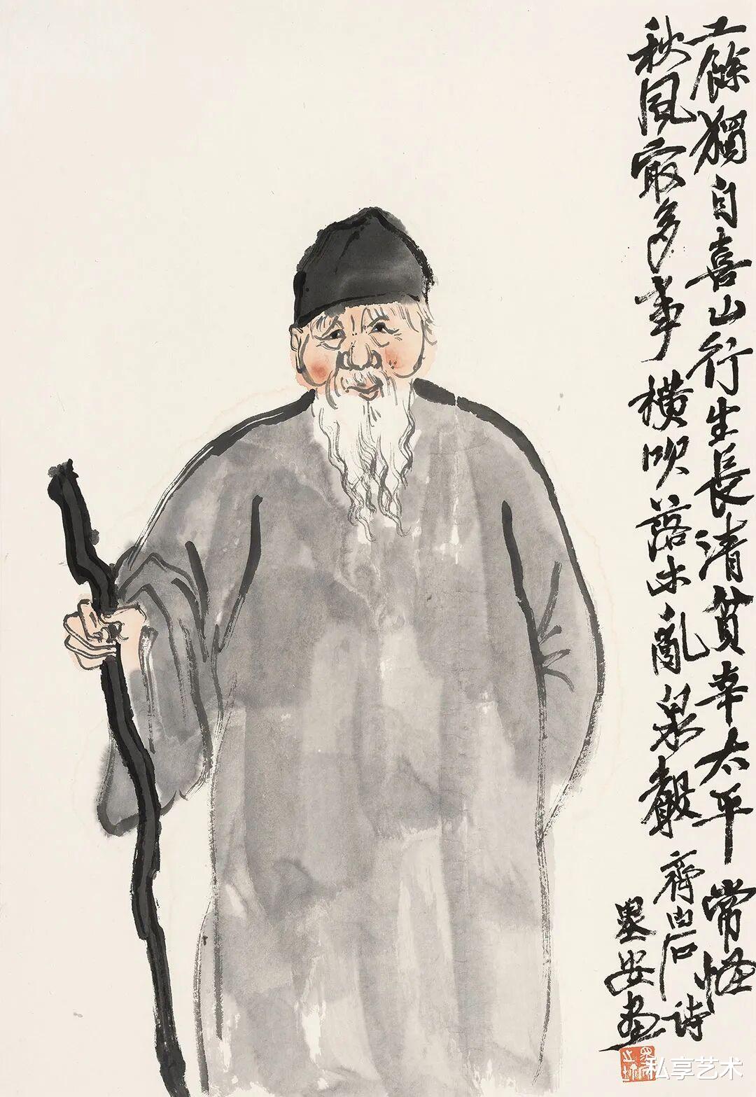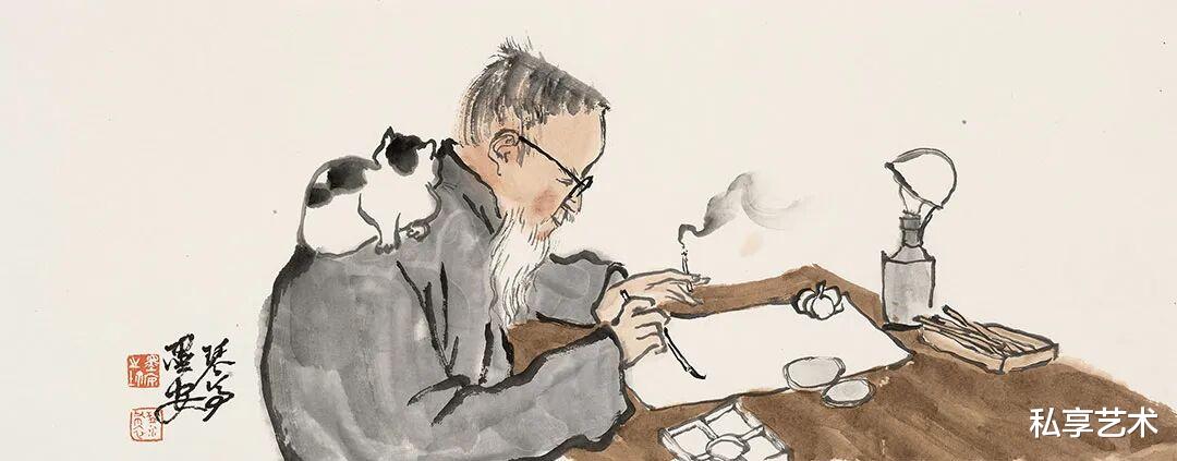 樊墨安以笔为心,以墨传神,在这一组人物小品中,悄然勾勒出几位大师的性情与风骨。他不求形似,却得神在;不重工细,而见意趣。寥寥数笔,便让白石老人的朴厚、大千先生的洒脱、悲鸿先生的沉静、昌硕先生的倔强跃然纸上。墨色浓淡间,是敬意,也是对话;线条疏朗处,有温度,亦有呼吸。这不仅是画人,更是写情——写一种文人的从容,一种艺术的日常,一种被时光沉淀下来的真味。看他的画,仿佛听见了旧日书斋里的笔砚轻响,也看见了那一代巨匠们在纸墨之间,活得自在又深情。
