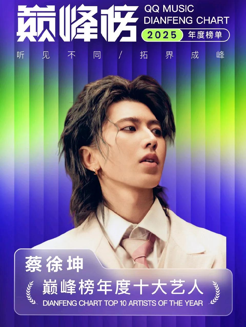 2025QQ音乐巅峰榜年度榜单公布,周深、蔡徐坤、邓紫棋、摩登兄弟刘宇宁、汪苏泷、王源等知名歌手榜上有名!一张帅气的官宣海报,见证了歌手周深最美好的形象!