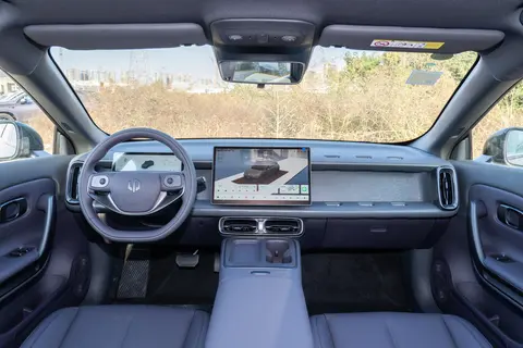 周末的时候,我特意开着它去跑了一次山,零跑 Lafa5 的优势彻底展现出来了。后置后驱的布局带来了接近 50:50 的黄金轴荷比,过弯的时候车身姿态特别稳定,侧倾控制得很好,完全不像这个价位车型的表现。前窄后宽的鸳鸯胎抓地力十足,配合精准无虚位的方向盘,“指哪打哪” 的感觉真的太爽了。连续弯道中,车身的循迹性特别好,不管是快速变道还是急弯超车,都能轻松应对,那种纯粹的驾驶乐趣,让我想起了经典的 “电动高尔夫”,甚至感觉还要更胜一筹。