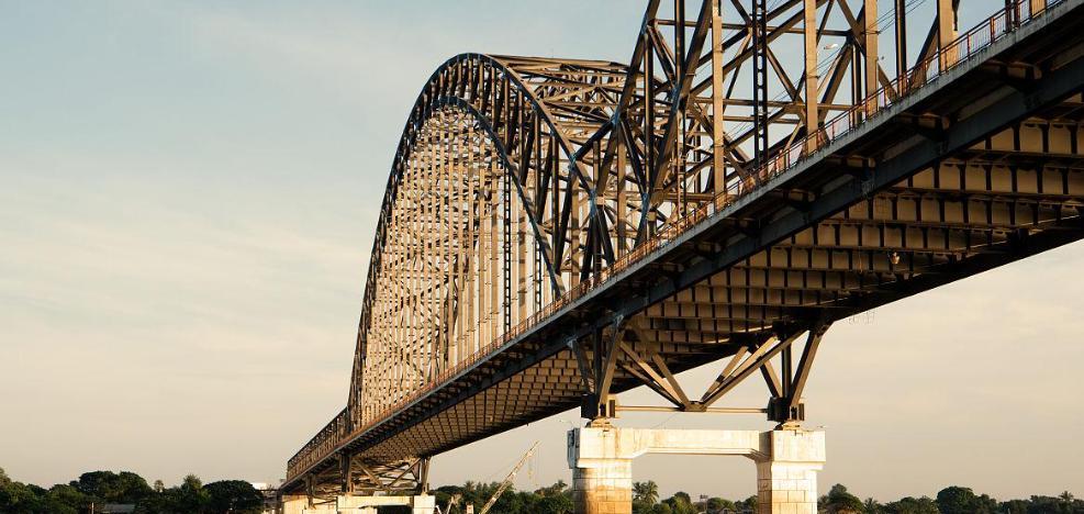 与之形成鲜明对比的是中国援建的伊洛瓦底江大桥。