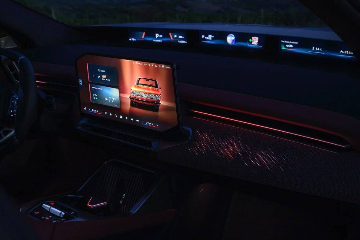 新世代宝马iX3长轴距版在内饰上同样进行了大幅升级,车内取消了传统仪表盘,取而代之的是BMW全景视域系统。这套系统在风挡底部实现了贯穿式信息投影,搭配多边形悬浮中控屏与3D抬头显示,构建出全场景的交互体验。硬件的提升也让车机的信息处理速度较前代提升了10倍。竖向双辐式方向盘成为内饰设计的亮点之一,三点和九点钟方向设计了特殊的拇指托凹陷曲面,握持更符合人体工程学。中控屏采用了切割设计的斜向多边形设计,同时实用功能键放置在主驾驶附近,使驾驶员操作保持便捷。