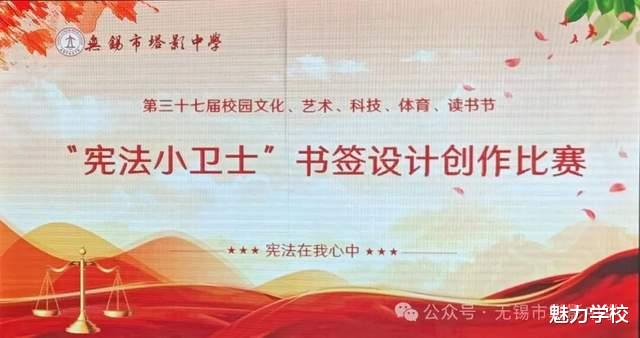 为弘扬宪法精神,厚植青少年法治信仰,无锡市塔影中学在艺术节活动期间开展了“宪法小卫士”书签设计大赛,为校园法治文化建设增添了一抹亮色。