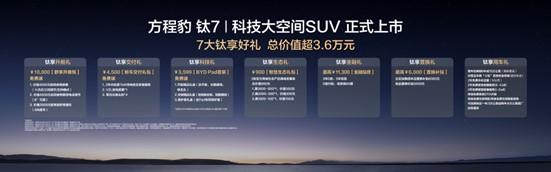 更为关键的是,方程豹为首批车主准备的总价值超 3.6 万元的七大权益礼包,进一步降低了购车门槛。其中包括 10000 元舒享升级包、3599 元 BYD Pad 套装、4500 元新车交付礼包等实质性馈赠,再加上最高 11300 元的金融贴息和 6000 元置换补贴,形成了 "价格洼地" 效应。这种组合策略使得钛 7 的实际入手成本大幅降低,在 15 万 - 20 万主力消费区间形成了强大的市场吸引力。