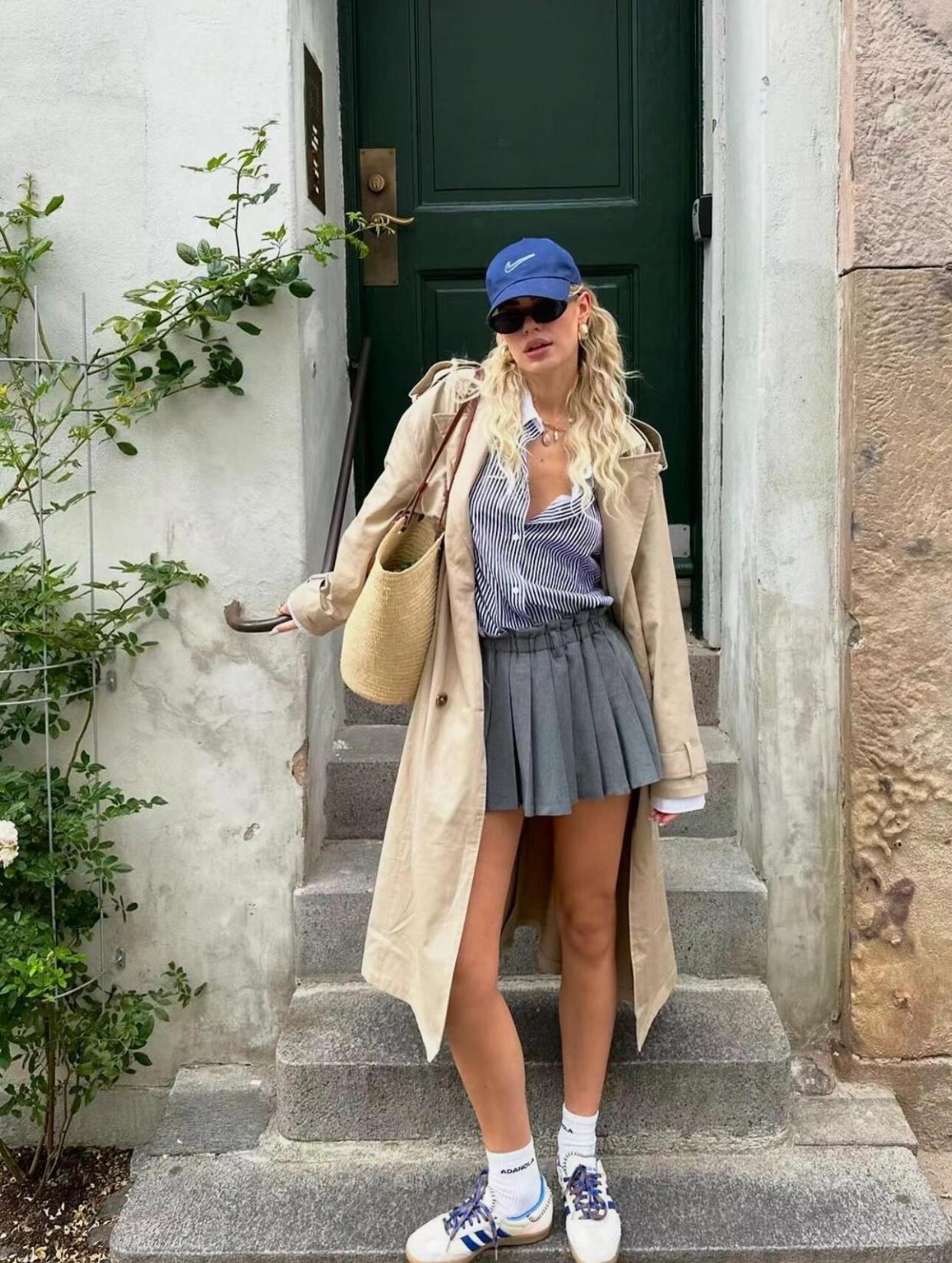搭配超短热裤或紧身牛仔裤,中和风衣的宽松感,避免头重脚轻。