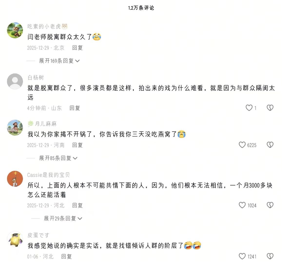 闫学晶的翻车,并非个例。娱乐圈里,不少演员靠着“底层角色”出圈,现实中却过着与角色天差地别的生活,对普通人的疾苦毫无概念。