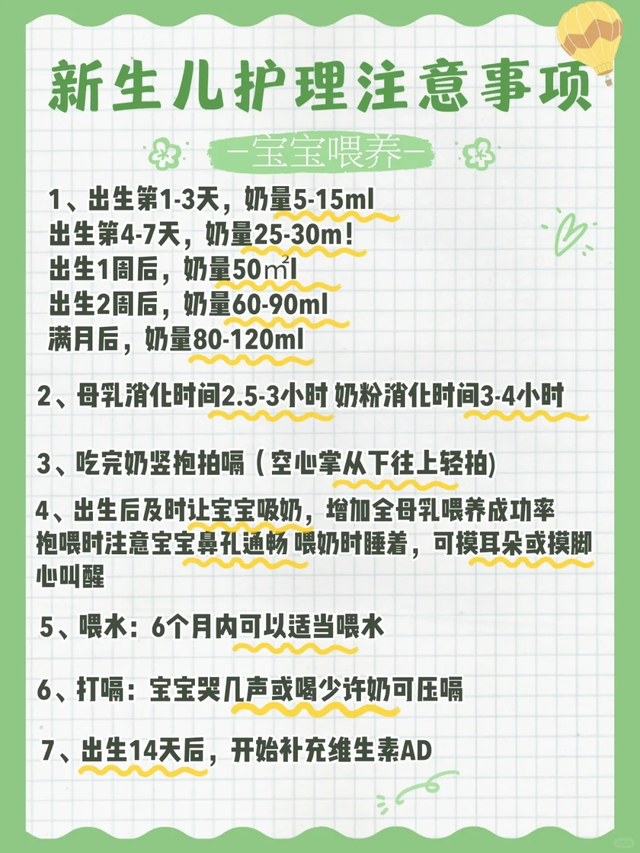 奶量调整:根据宝宝年龄调整奶量,从出生初期的5-15ml逐步增加。