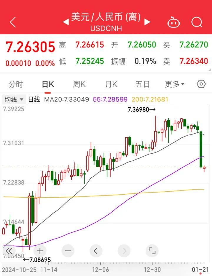 昨日晚间,人民币资产迎来集体反攻。离岸人民币兑美元持续拉升,接连收复7.31、7.30、7.29、7.28、7.27、7.26关口。与此同时,富时中国A50指数期货上涨超过1%,这为即将开盘的A股“春节红包行情”打下了基础。