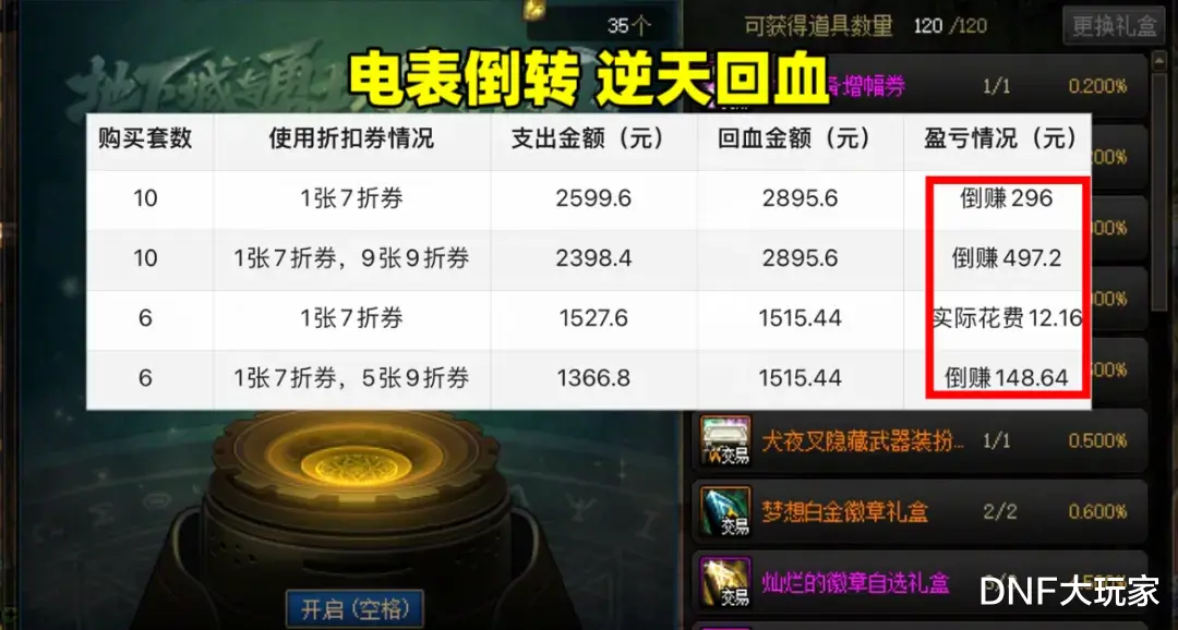 DNF:电表倒赚!逆天回血!拉满10套赚497元!拉6套赚148元!白狐狸真有本事!买礼包还能倒赚钱!但有两大极端问题不能忽视!