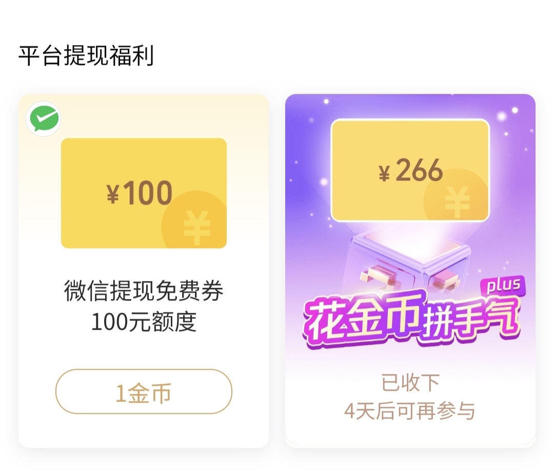 金币换提现券每周只能换一次366元,兑换后额度有效期只有30天,所以大家兑换完立即提现,以免忘记。