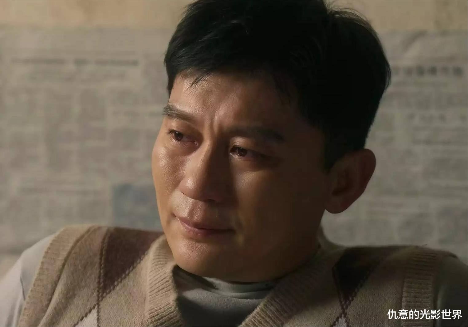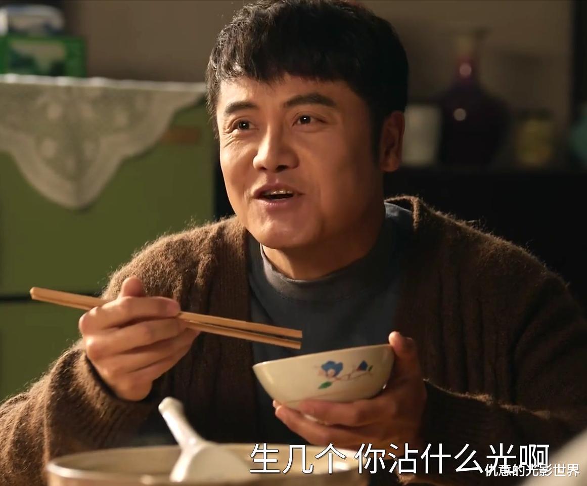 平时不动声色之时,眼角鱼尾纹就已是“光芒四射”,下面的这张剧照,那简直就没法看了,一个剧中刚刚喜当爹的年轻父亲,看上去却比老大叔还老大叔。